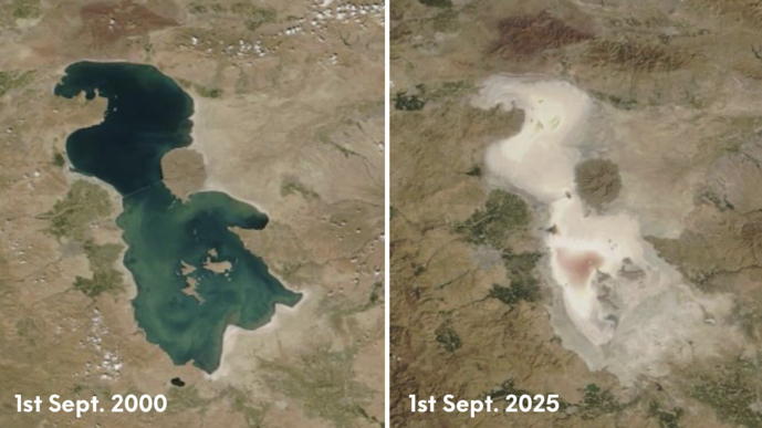 Meine im Iran lebende Kollegin studierte einst in der Stadt Urmia am Westufer des Sees. Urmia heisst Stadt am See. Vom See ist fast nichts mehr übrig geblieben, schreibt sie mir jetzt. Und er stirbt immer rascher. Abnehmende Niederschläge und Erderwärmung werden als äussere Ursachen genannt; doch gleichzeitig verbraucht eine ineffiziente Landwirtschaft immer mehr Wasser, landesweit neunzig Prozent des verfügbaren Wassers. Um die Bewässerung der Ackerflächen zu fördern, wurden Staudämme gebaut, was nicht zuletzt den Zufluss zum Urmiasee verringerte.