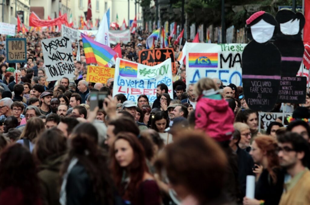 The civil society of Trieste and the surrounding region protested with a simultaneous demonstration in which 5,000 persons participated. The pictures of the two marches, rigorously separated by the police, reveal two insights: