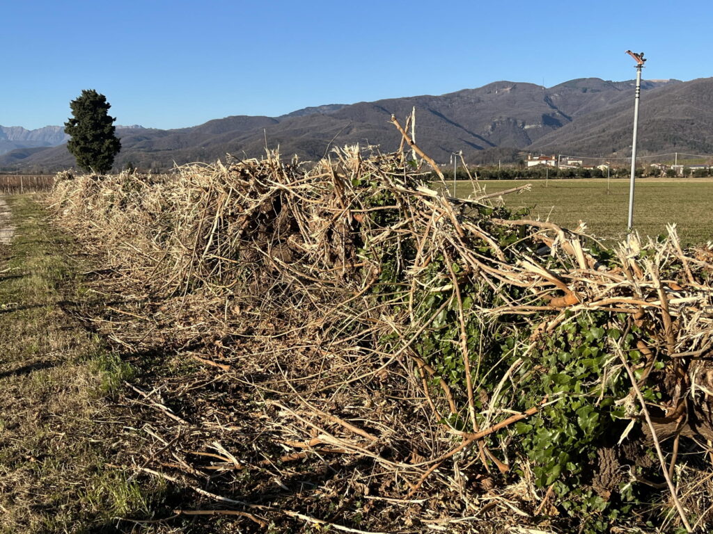 Mit welchem Recht eigentlich machen hochsubventionierte Bauern mit unserem Geld ganze Landschaften platt? Leergeräumt für den Anbau von Futtermais, Futtersoja et cetera, Hecken und Gehölze weg – und wo noch Hecken im Weg stehen, die einst Material für Korbware lieferten und heute wenigstens noch Windschutz und Lebensraum für viele Arten bieten, werden die Äste neuerdings mit der Kettensäge einfach abgerissen, unnützes Zeug… Je leerer Landschaft, desto mehr Humus trägt der Wind mit sich fort, der hier fast täglich von den nahen Bergen weht.