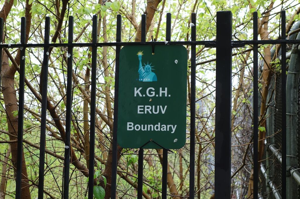 Strenggläubige Juden dürfen am Schabbat keine Arbeit verrichten. Wenn sie an ihrem Sonntag ausser Haus gehen, etwa in die Synagoge oder für einen Spaziergang, dürften sich streng genommen nicht mal einen Schlüsselbund, ein Fahrrad oder einen Kinderwagen dabei haben. In einer als «Eruv» bezeichneten Zone aber ist ihnen das erlaubt. [1] [2]